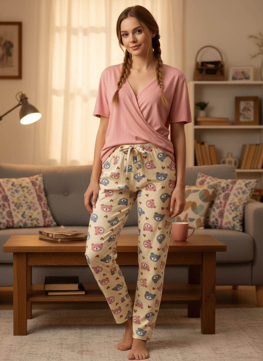 DESENLİ KADIN PİJAMA TEK ALT