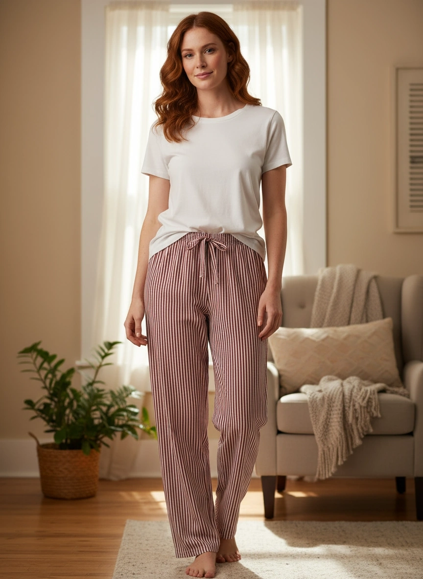 - Uzun boyu ve düz paça tasarımı ile evde rahat hareket etme özgürlüğü sağlar.